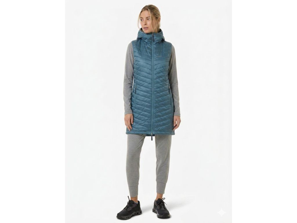 Vesta The Debbie má prodlouženou délku do půli stehen, a tak vás velmi dobře ochrání před chladem, jelikož skvěle kryje bedra a bříško. Hlavní zip vesty, který je dvoucestný, zajistí, že si můžete vytvořit rozparek, který vám umožní větší volnost v pohybu. Vesta je opatřena dvěma kapsami na zip pro uschování osobních věcí. Pro absolutní komfort má vesta dokonale padnoucí kapuci, která vám z hlavy jen tak nespadne a bude vám krásně krýt celý krk a bradu. Jako lem kapuce je použit materiál zvaný Lycra, který je velice příjemný a nasazená kapuce vás nebude škrábat na obličeji.