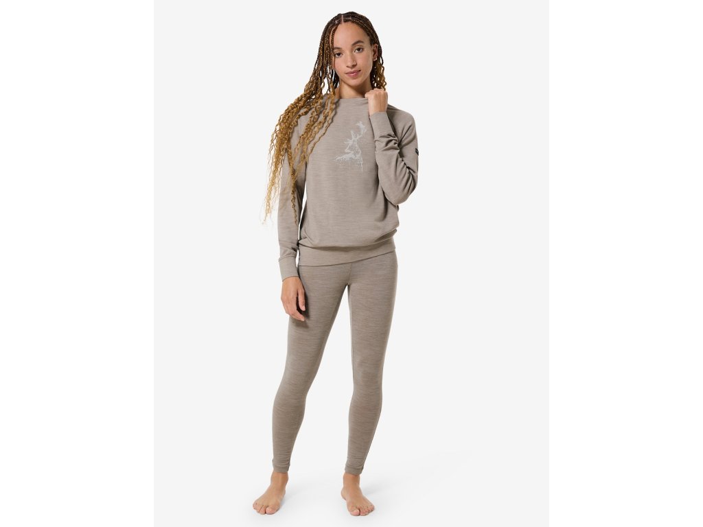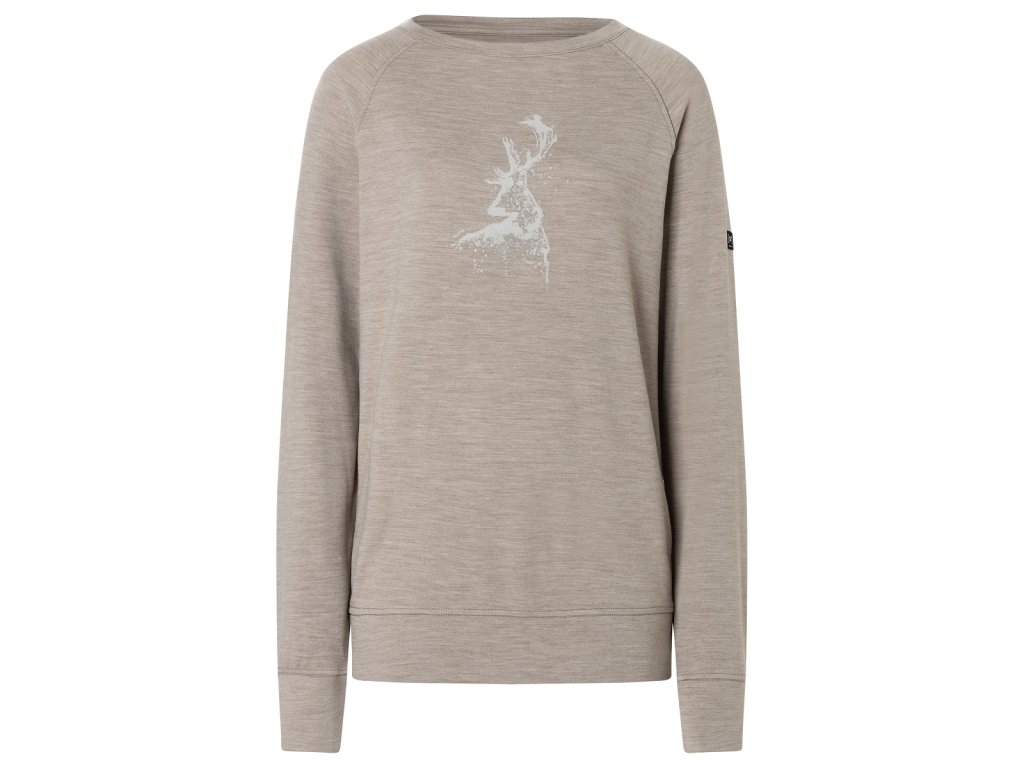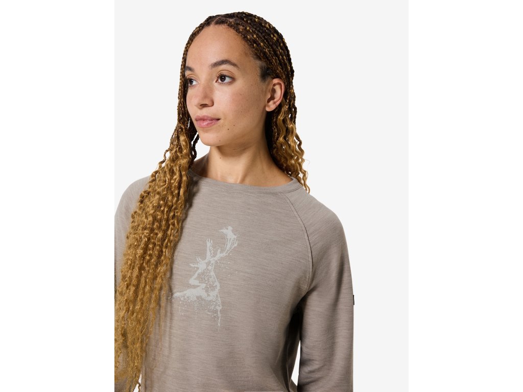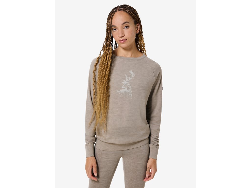 Dámská merino mikina W CHARMIG DEER BRUSH LS [sn] - vintage khaki melange/white stone/feather grey