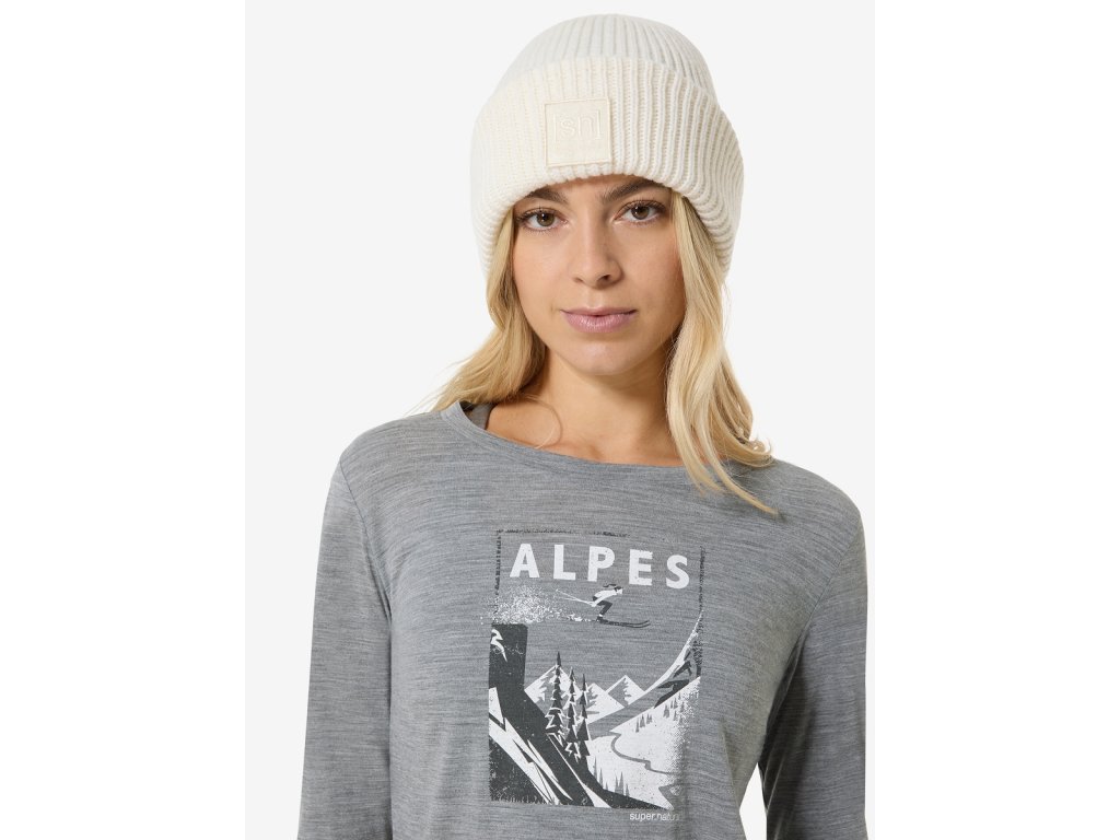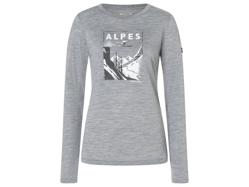 Dámské merino triko dlouhý rukáv W ALPES LS [sn] - cashmere grey melange/dark shadow melange/fresh white