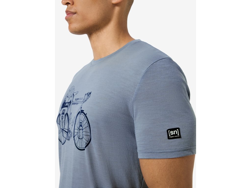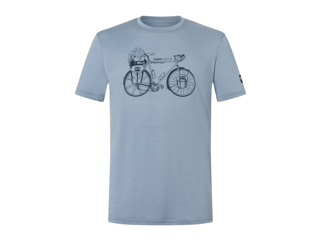 The M WANDER WHEEL TEE from super.natural is the perfect Merino T-shirt for anyone who loves cycling in its most adventurous form. With a cool bicycle graphic, it inspires endless rides and unforgettable journeys of discovery on two wheels. The ADVANCED WOOL 140 Merino blend ensures comfortable wear and natural temperature regulation, so you always stay cool, no matter where your journey takes you.