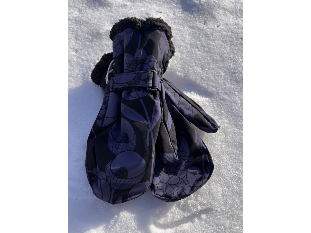 Insulated mittens with a fleece lining that is so nice and warm. The mittens are waterproof and have a velcro wrist strap.