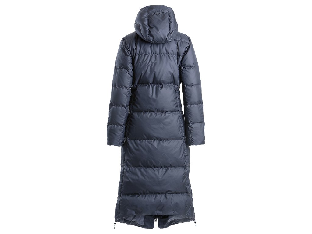 Dámský péřový kabát Hella je dlouhý do poloviny lýtek, ale nemusíte se bát, že by se Vám v něm špatně chodilo. Má totiž po stranách dva zipy, kterými si kabát můžete rozevřít.