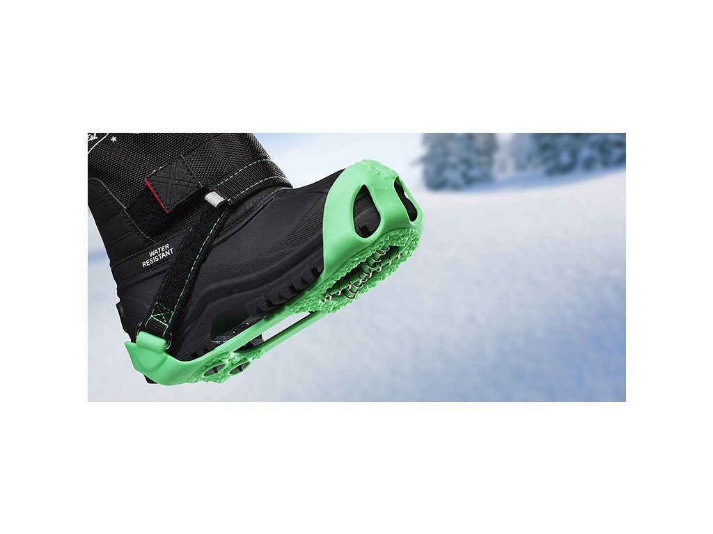 Pod nártem jsou kovové pružinky, které drží i na hlubším sněhu. Pod patou mají nesmeky dva odolné hroty pro lepší stabilitu na ledu. Pokud jste na hraně velikostí doporučujeme volit menší velikost.