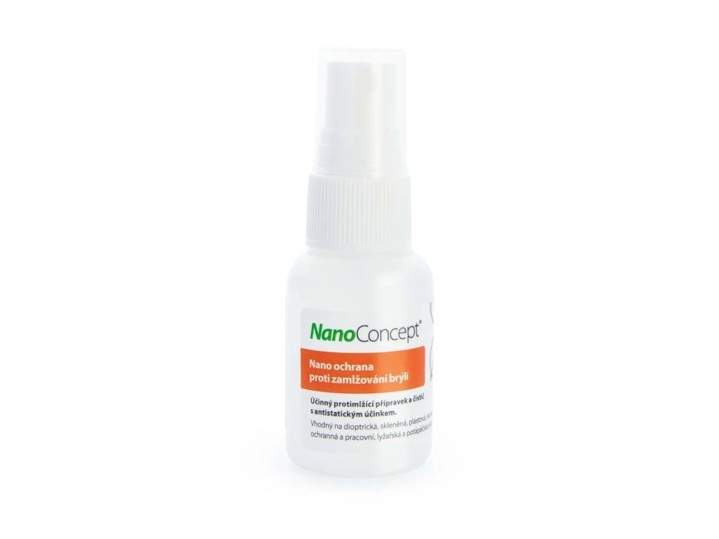 Protimlžící a antistatická ochrana brýlí. Účinkuje na všech typech brýlí. Vysoce účinný protimlžící přípravek na principu nanotechnologie. Ideální k údržbě brýlových skel z umělé hmoty nebo ze skla, k péči o kvalitní ušlechtilá skla, o sportovní, lyžařské, sluneční nebo potápěčské brýle, stejně tak i k péči o různé druhy objektivů. NanoConcept® Ochrana brýlí spojuje vysoce účinný čistící, protizamlžovací a antistatický prostředek. Po aplikaci je povrch zakonzervován průsvitnou nano vrstvou, která účinně zabraňuje zamlžování skel, usazování prachu a nečistot na povrchu skel. Díky speciálně vyvinuté smáčecí látce, jež vstupuje do přímého spojení s daným povrchem, nedochází ke vzniku žádného optického zkreslení.
