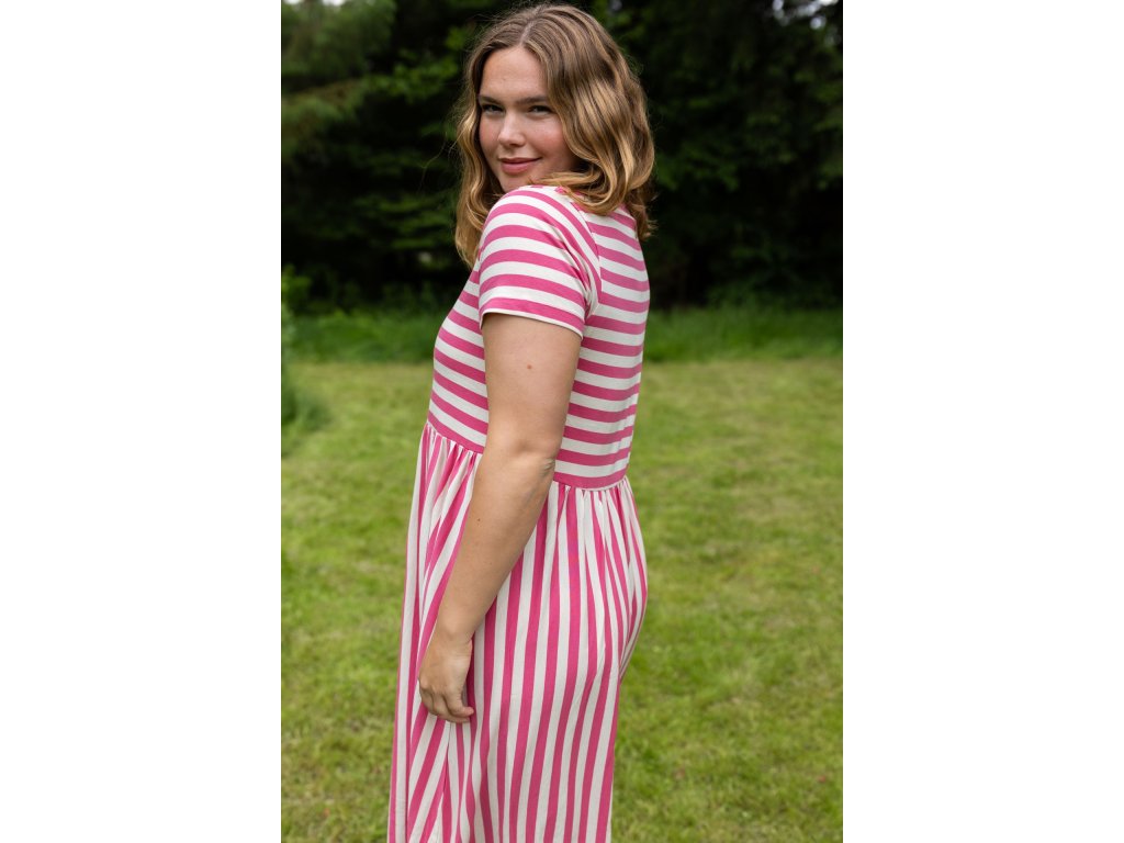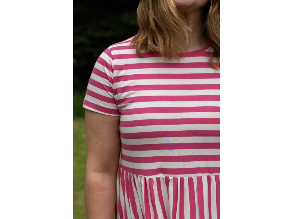 Lehoučké růžové tričkové letní šaty s krátkým rukávem a nařasenou sukní pro vaše maximální pohodlí během letních slunečních dní.