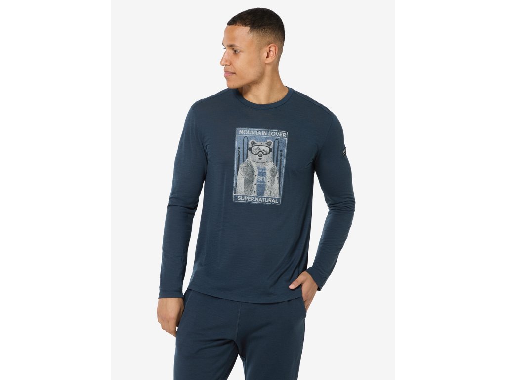 Pánské merino triko dlouhý rukáv M BEARSKI LS [sn] - blueberry/various