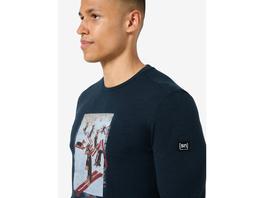 Pánské merino triko dlouhý rukáv M DACHSHUND BRUSH LS [sn] - blueberry/various