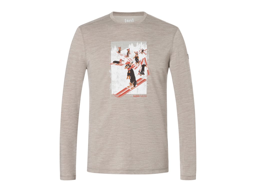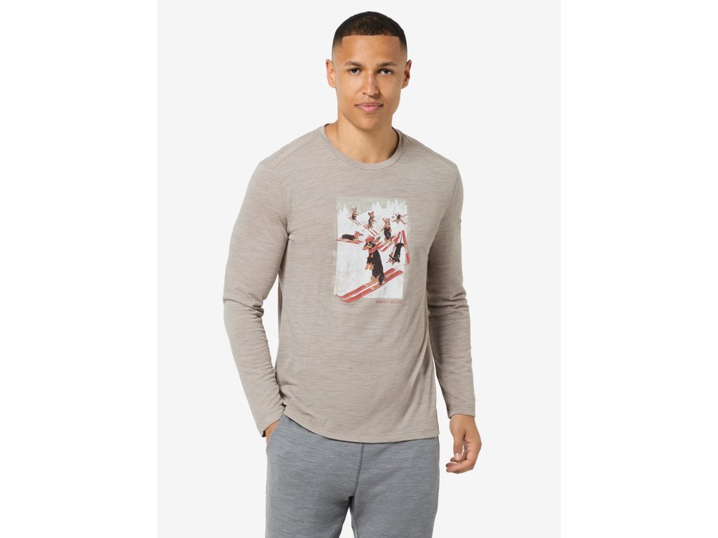 Pánské merino triko dlouhý rukáv M DACHSHUND PARTY LS [sn] - vintage khaki melange/various