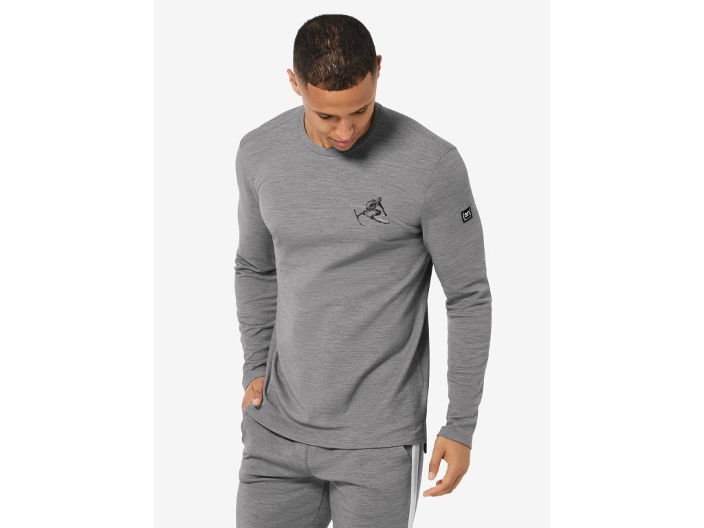 Pánské merino triko dlouhý rukáv M TONI BRUSH LS [sn] - cashmere grey melange/jet black/fresh white