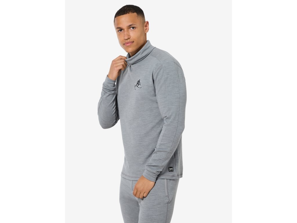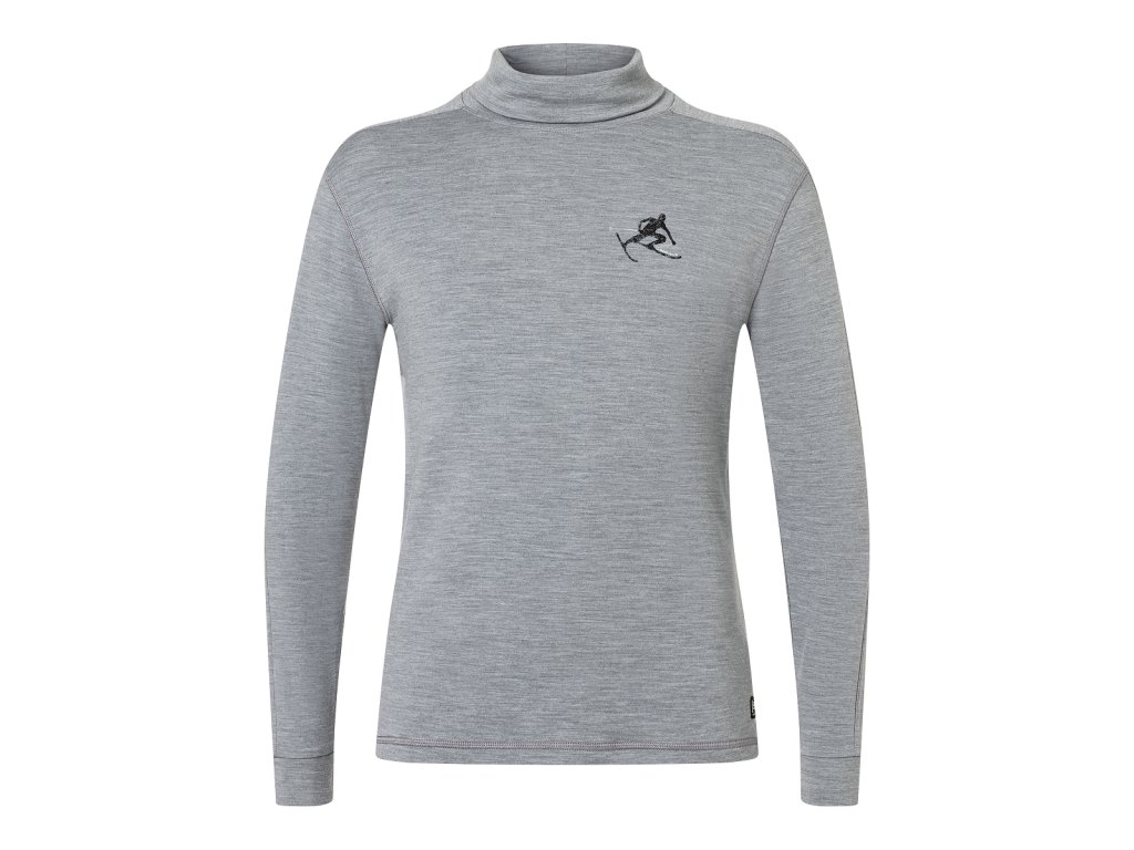 Pánské merino triko dlouhý rukáv M TONI ROLL NECK [sn] - cashmere grey melange/jet black/fresh white