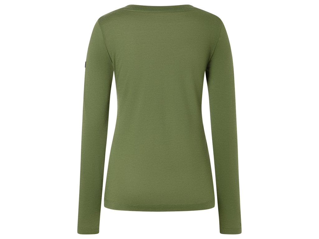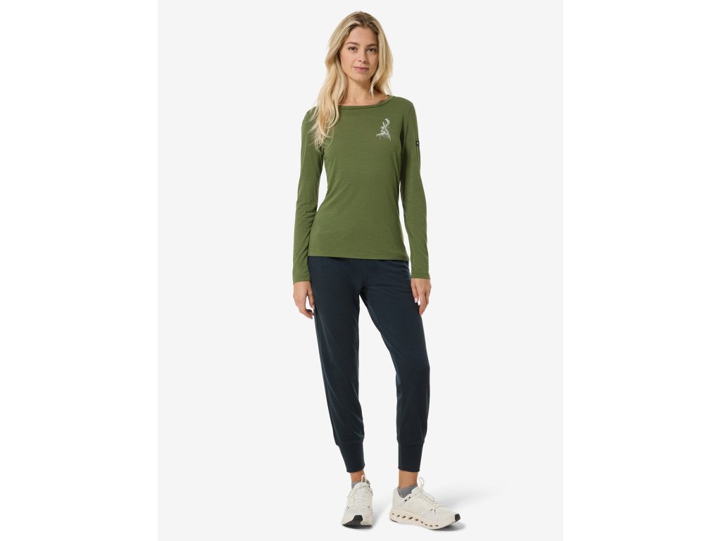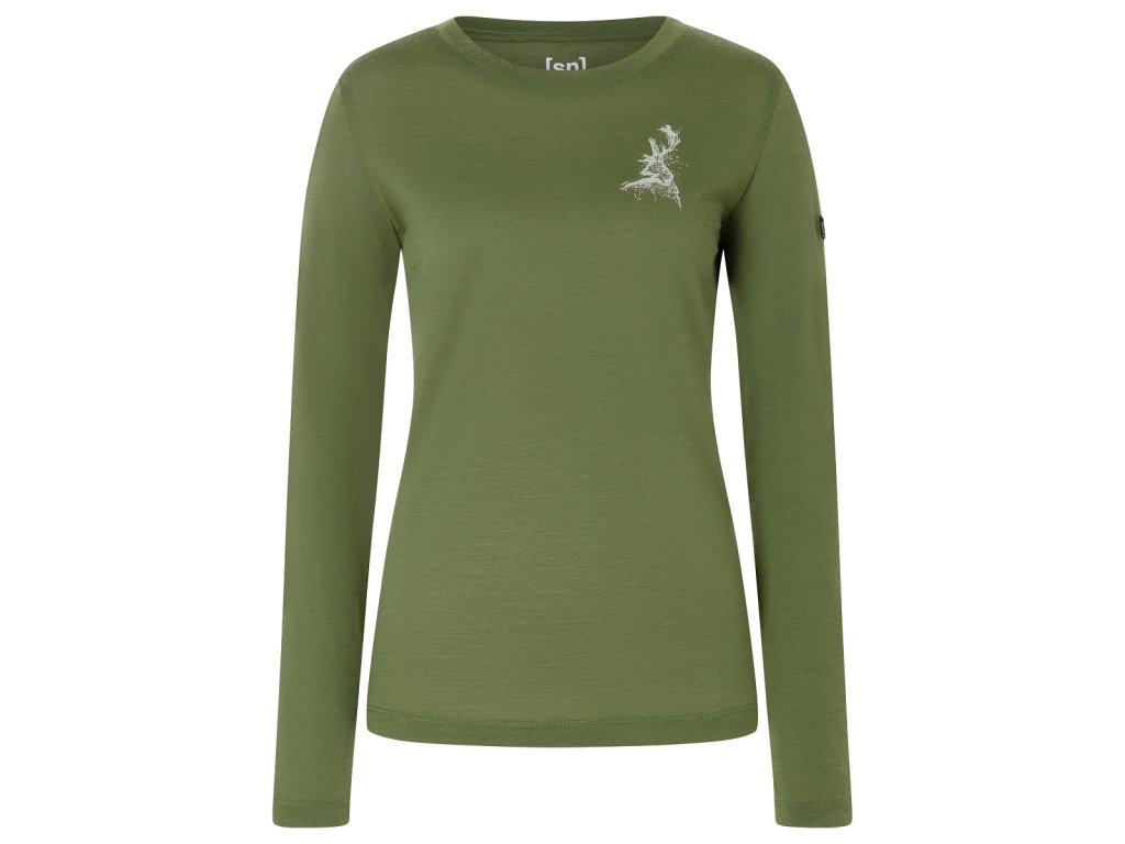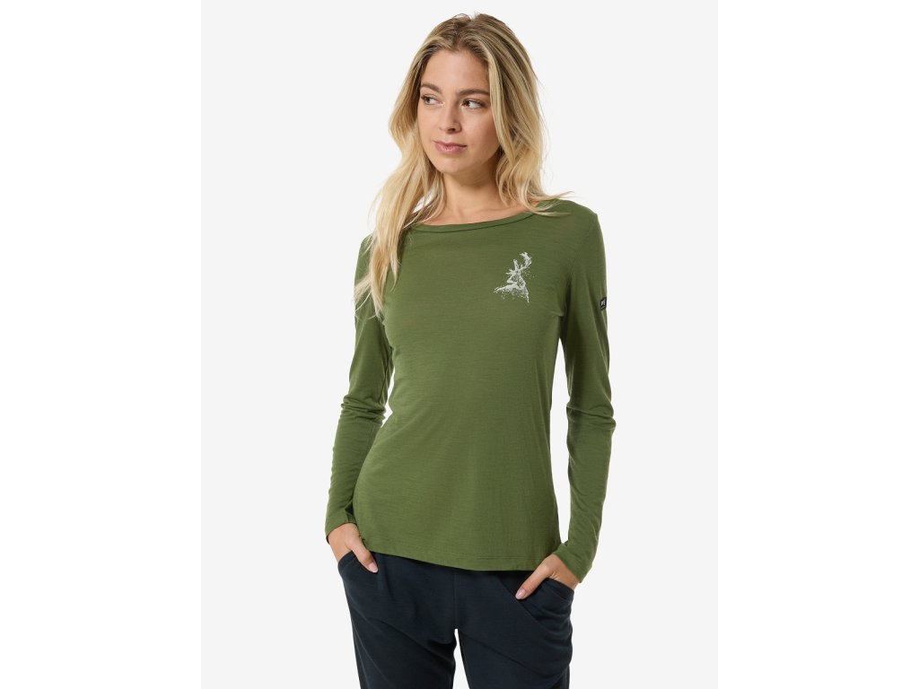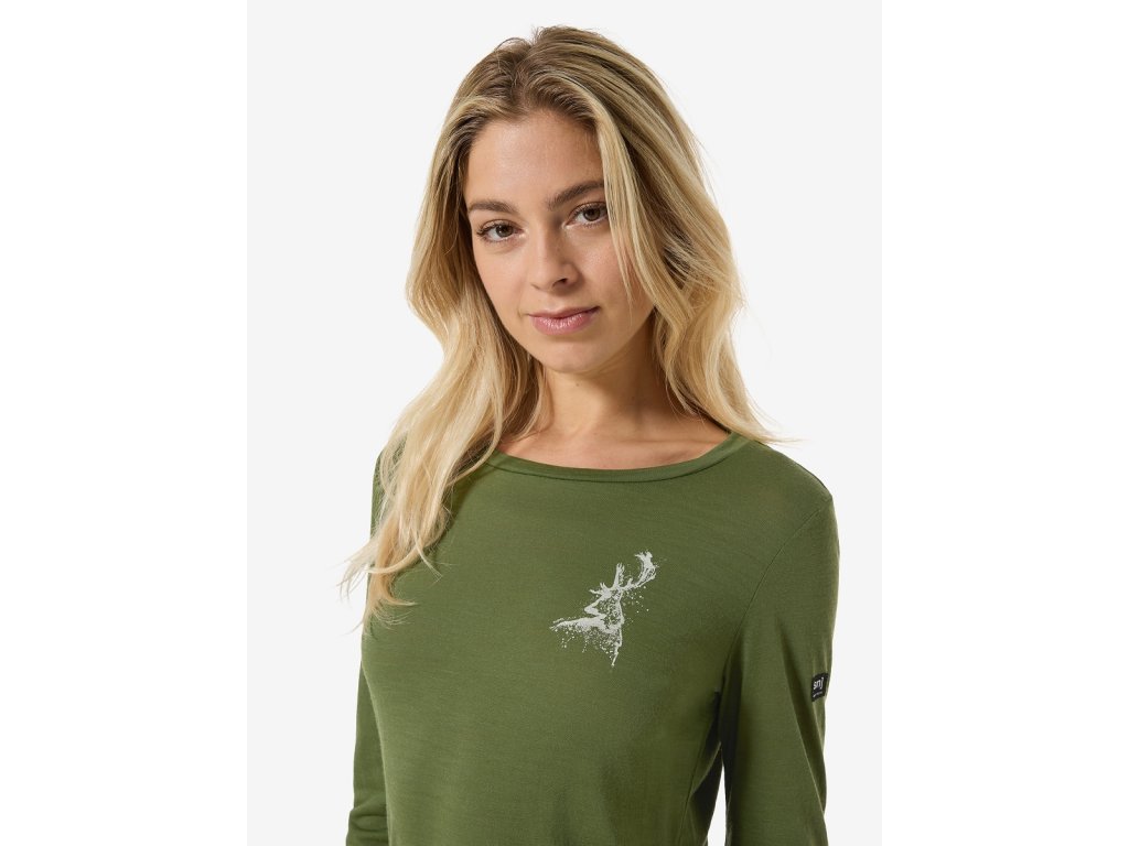 Dámské merino triko dlouhý rukáv W CHARMING DEER LS [sn] - chive/vintage khaki melange/white stone