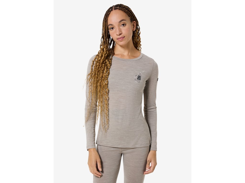 Dámské merino triko dlouhý rukáv W LIL SKI BUNNY LS [sn] - vintage khaki melange/various