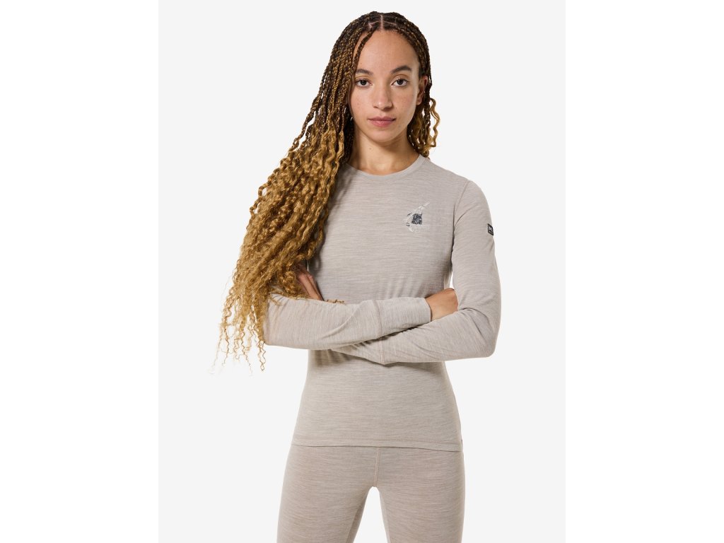 Dámské merino triko dlouhý rukáv W TUNDRA175 BUNNY LS [sn] - vintage khaki melange/various