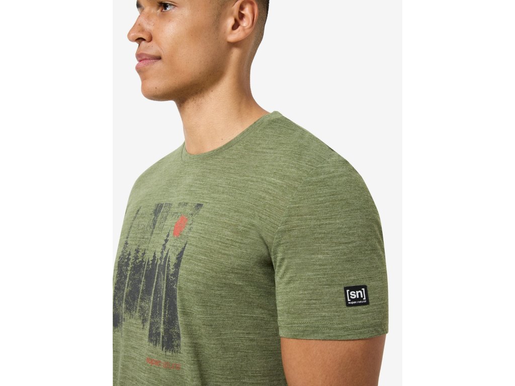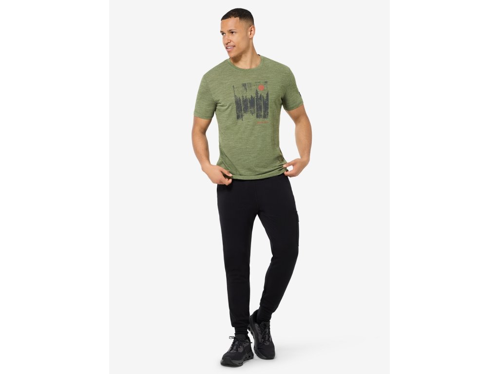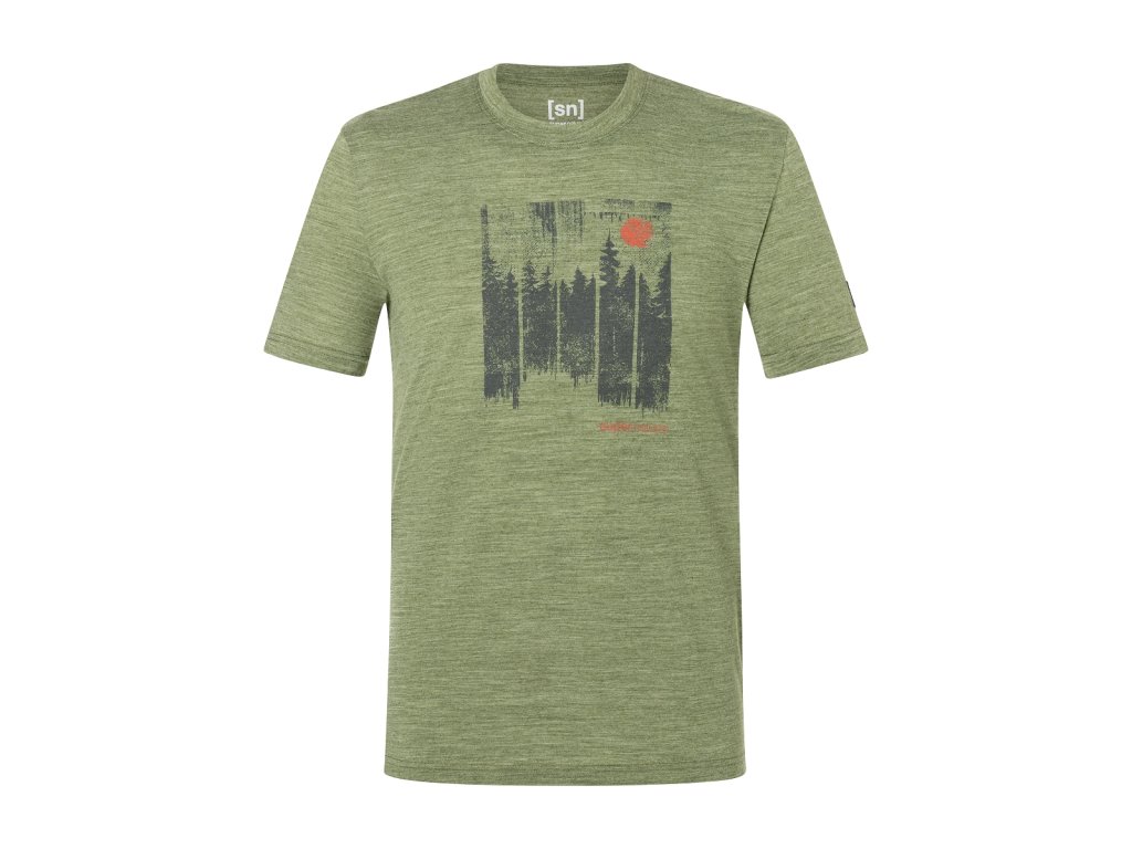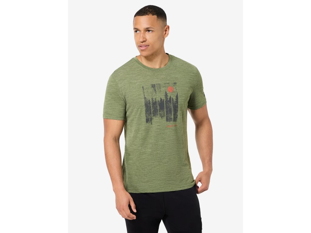 Pánské merino triko M WONDER WALD TEE [sn] - leaf melange/dark shadow melange/chilli